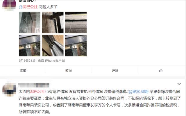 鲁班装饰小编特地去网上搜索了一下泥巴公社,发现网友爆出来的不仅是苹果集团的所有公司资金链出了问题,更多的是公司的工地出了问题,不仅拖延工期,施工质量差,导致了许多业主不满,最终的结果只能慢慢走向没落。
