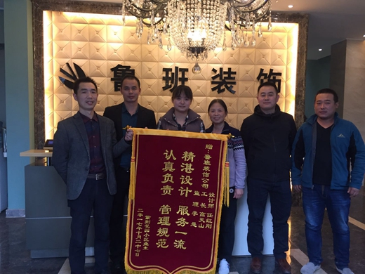 2017年10月28日,陕西鲁班装饰高新原创MILAN米兰体育·(中国)官方网站中心一如往常的人头攒动,咨询装修的业主络绎不绝;下午时分,紫荆花园的业携家人将一面写有“精湛MILAN米兰体育·(中国)官方网站服务一流,认真负责,管理规范”的大红锦旗亲自送到了鲁班装饰高新总部。