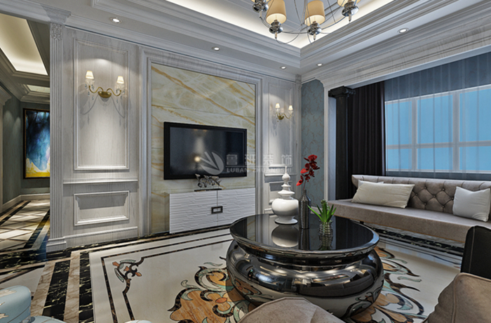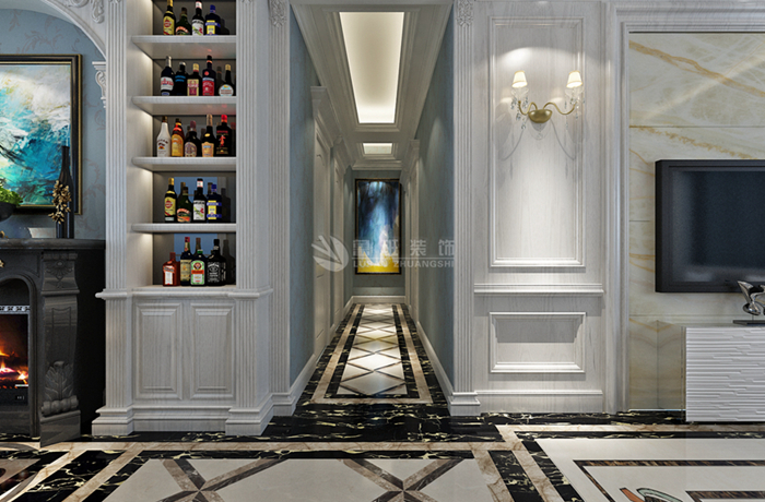 房间的门和各种柜门,既要突出凹凸感,又要有优美的弧线,两种造型相映成趣,风情万种。用地面拼花、多彩的织物、精美的地毯,精致的挂画,整个风格豪华、富丽,充满强烈的动感效果。