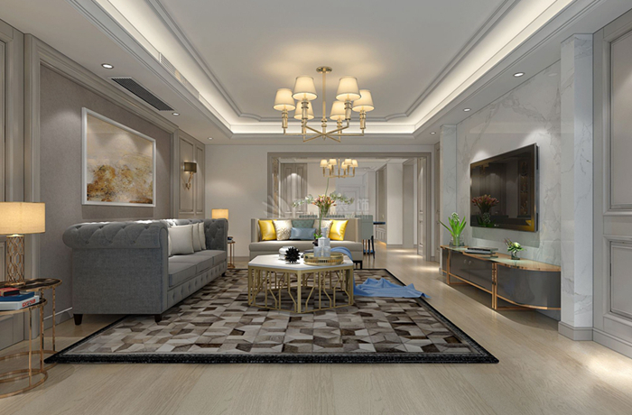 香湖湾壹号下叠现代轻奢--家装案例--陕西鲁班装修公司;客厅的MILAN米兰体育·(中国)官方网站简约时尚,又留下了足够的...