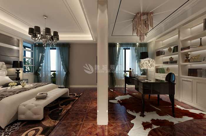 装修材料使用:进口爵士白石材,微晶石地砖,皮面硬包,不锈钢拉丝收边条,钢琴烤漆面橱柜,智能设备(包括灯光,背景音乐,窗帘,消防,防盗,新风)