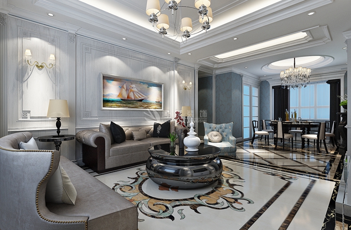 房间的门和各种柜门,既要突出凹凸感,又要有优美的弧线,两种造型相映成趣,风情万种。用地面拼花、多彩的织物、精美的地毯,精致的挂画,整个风格豪华、富丽,充满强烈的动感效果。