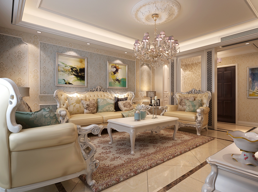 长和上尚郡-家装案例--陕西鲁班装修公司;本案主笔MILAN米兰体育·(中国)官方网站师:李萌;简欧风格,家具主要特色是强调力度、变化和动感,沙发华丽的布面与精致的雕刻相互配合,把高贵的造型与地面的舖饰溶为一体。门的造型MILAN米兰体育·(中国)官方网站,包括房间的门和各种柜门,既要突出凹凸感,又要有优美的弧线,两种造型相映成趣,风情万种!欧式风格采用白色、淡色为主,以淡色的色调对比跳跃的沙发靠垫颜色。中国实木家装领导品牌——陕西鲁班装饰公司精心打造 !
