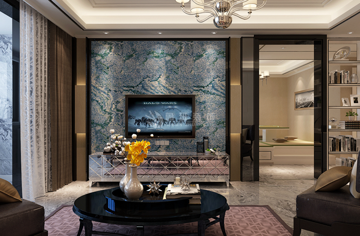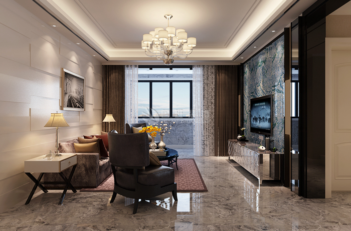 保利拉菲公馆-家装案例--陕西鲁班装修公司;本案主笔MILAN米兰体育·(中国)官方网站师:李萌;“高端大气上档次"是人们对简约风格地砖装修效果的总结,其MILAN米兰体育·(中国)官方网站以简洁为主,没有靓丽精美的拼花图案描绘,只凭干净利落的线条装饰和清新淡雅的色彩搭配,打造出一个清丽的自然空间。这套简约风格的地砖装修效果图一改瓷砖以往给人的冰冷感,视觉效果极佳,纹理清晰,触感真实,给人带来温馨、舒适的视觉享受,更加烘托出了居室的生活气息,也提升了客厅的艺术格调。大户型·豪宅装修专家,中国实木家装领导品牌——陕西鲁班装饰公司精心打造 !