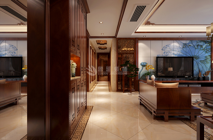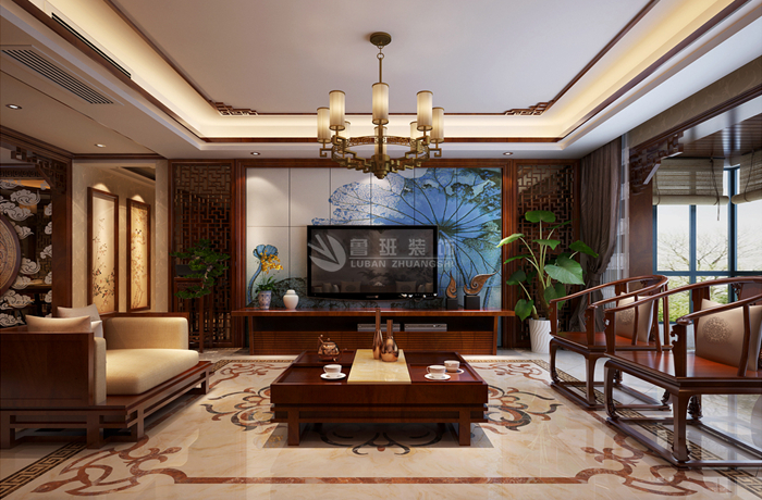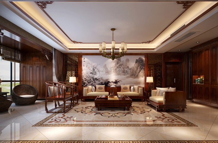 中式风格的构成主要体现在传统家具(多为明清家具为主),装饰品以黒、红为主的装饰色彩上。室内多采用对称式的布局方式,格调高雅,造型简朴优美,色彩浓重而成熟。中国传统室内装饰艺术的特点是布局对称均衡,端正稳健,充分体现出中国传统美学精神。