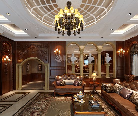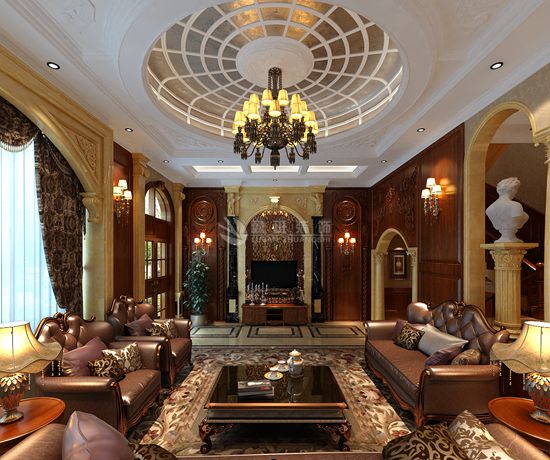 巴洛克装饰风格,在意大利文艺复兴时期开始流行,具有豪华、动感、多变的效果,空间上追求连续性,追求形体的变化和层次感。一般巴洛克风格的室内平面不会平竖直,各种墙体结构都喜欢带一些曲线,尽管房间还是方的,里面的装饰线却不是直线,二是华丽的大曲线。房间里面、走廊上喜欢放塑像和壁画,壁画雕塑与室内空间融为一体,巴洛克装饰更个使用曲线,曲面,断檐,层叠的柱式,有去口或者叠套的山花等不规则的古典柱式的组合,不顾忌传统的构图特征和结构逻辑,敢于创新,善于运用透视原理。室内外色彩鲜艳,光影变化丰富。