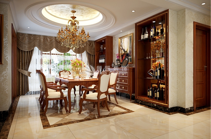 外国语家属院--家装案例--陕西鲁班装修公司;当人们以现代物质生活的要求不断得到满足时,又萌发出一种向往传统、怀念古老珍品、珍爱有艺术价值的传统风格的情结。于是欧洲文艺复兴时期那种描绘细致、丰裕华丽的风格,以及稍后的巴洛克和洛可可那种曲线优美、线条流动的风格常在居室装饰及家私陈设中出现。格调相同的壁纸、帘幔、地毯、家具、外罩等装饰织物;以及陈列着颇有欣赏价值的各式传统餐具、茶具的饰品柜,给古典风格的家居环境增添了端庄、典雅的贵族气氛。