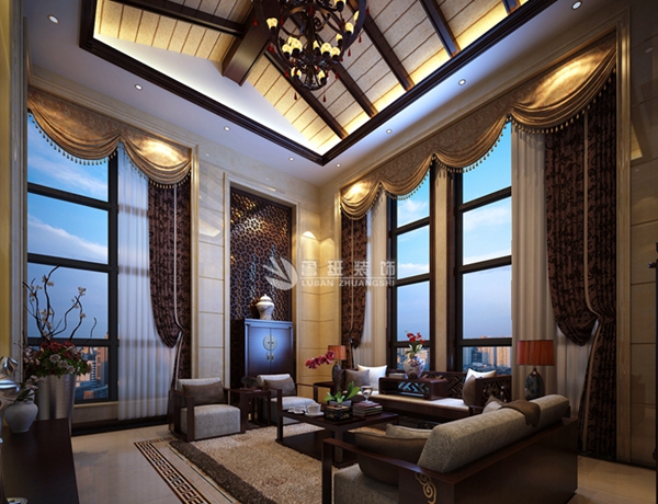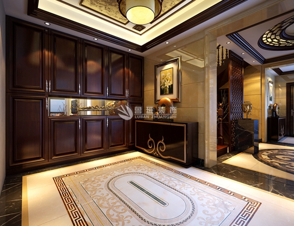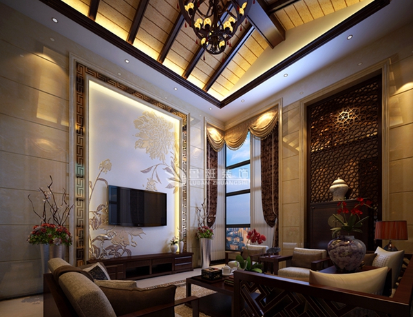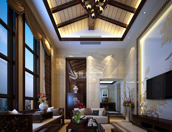 西西安小镇--家装案例--陕西鲁班装修公司;中国风格的构成主要体现在传统家具(多为明清家具为主)、装饰品及黑、红为主的装饰色彩上。室内多采用对称式的布局方式,格调高雅,造型简朴优美,色彩浓重而成熟。中国传统室内客厅陈设包括字画、匾幅、挂屏、盆景、瓷器、古玩、屏风、博古架等,追求一种修身养性的生活境界。中国传统室内装饰艺术的特点是总体布局对称均衡,端正稳健,而在装饰细节上崇尚自然情趣,花鸟、鱼虫等精雕细琢,富于变化,充分体现出中国传统美学精神。