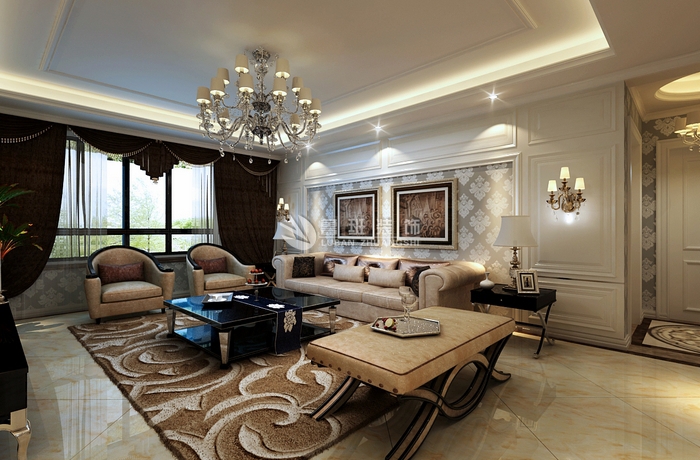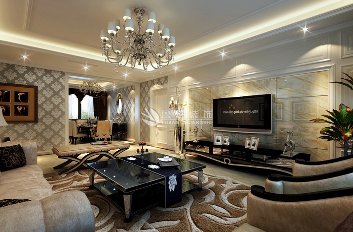 MILAN米兰体育·(中国)官方网站理念: 紫薇风尚--家装案例--陕西鲁班装修公司;巧妙地运用大马士革花纹木镂花隔断,保持客厅与餐厅的通透感。以精心雕琢的餐桌椅、填充整个餐厅空间。利用一盏高贵神秘的金色水晶吊灯进行照明,渲染出欧式风格华丽的氛围。欧式客厅装修以简约白和淡雅黄为主,搭配卡其色铺陈空间的明亮格调,具有增大空间的视觉效果。时尚、雅致的皮艺硬包背景墙,搭配大气的内嵌式造型博古架,尽显欧式风格的奢华与优雅。