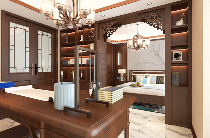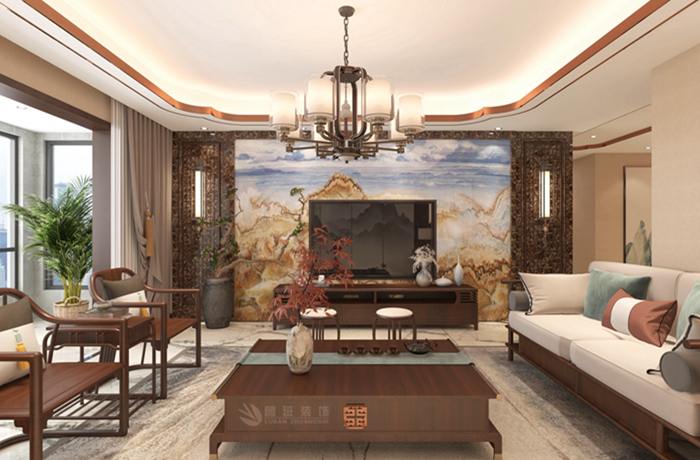 中海东郡旧改四居室181平米新中式风格-家装案例--陕西鲁班装修公司